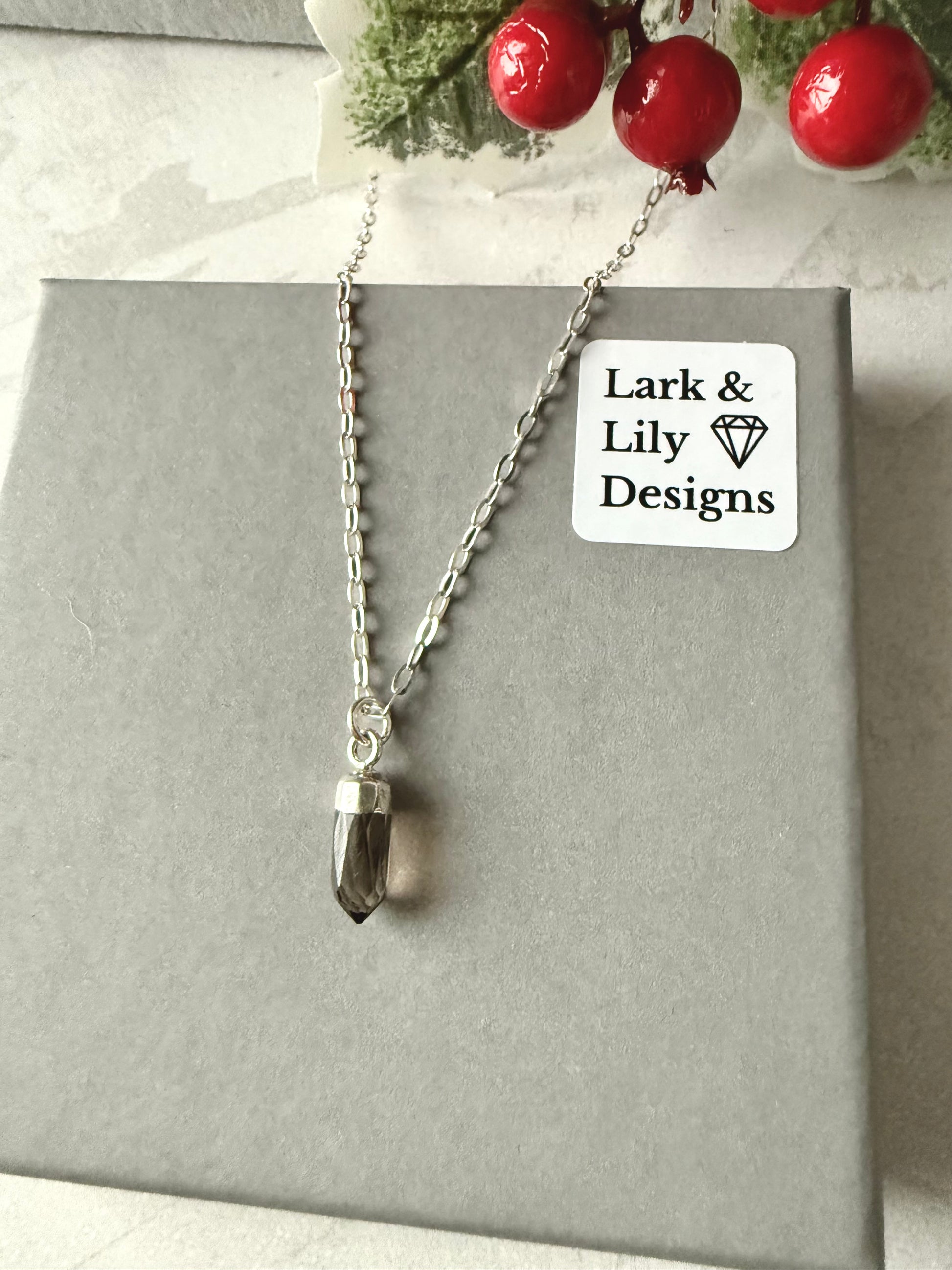 Smokey Quartz pendant (approx 14mm) on a lovely delicate silver chain, approx 16 inches.
